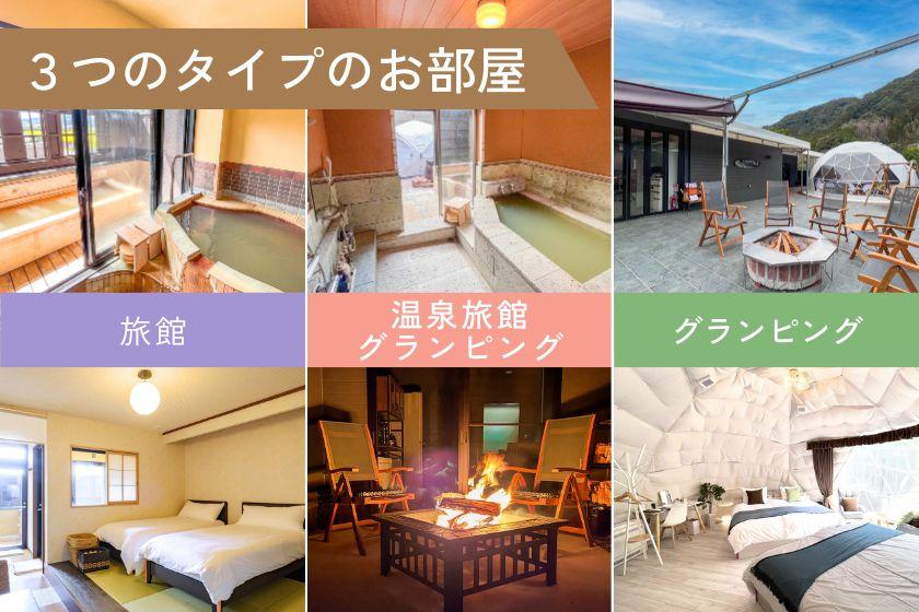 リニューアルオープン!旅館に泊まりながらグランピング体験ができる!?全室温泉・サウナ付き温泉旅館グランピング!<夕朝食付※冷蔵庫ドリンク無料>